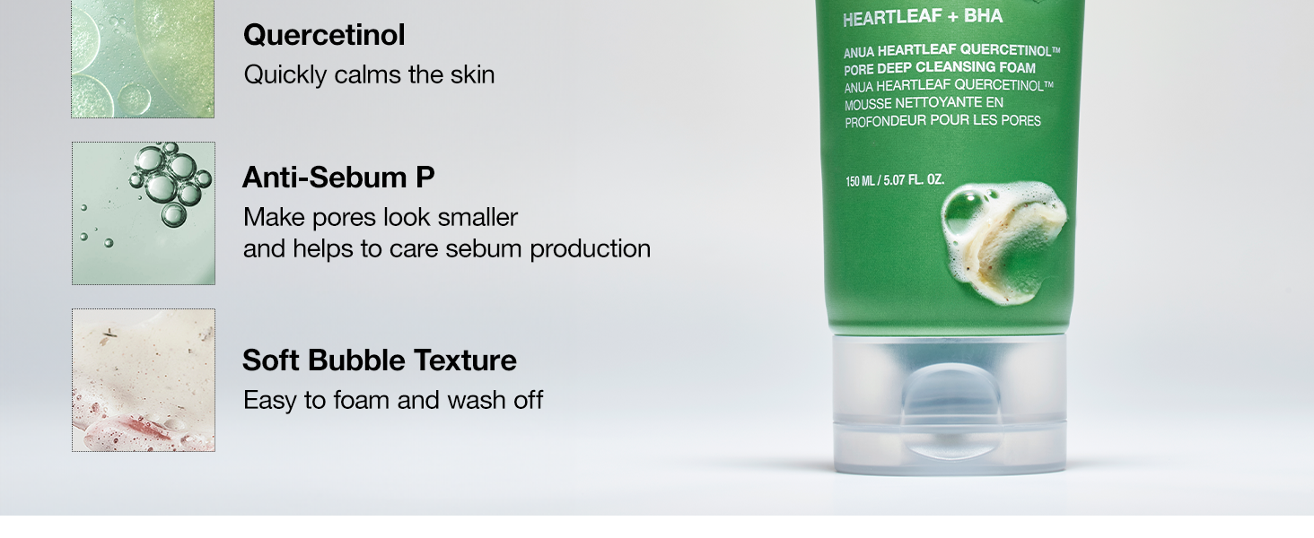 Libras Shop™ Anua Heartleaf Quercetinol Deep Cleansing Foam – Gentle Face Wash with BHA, Hyaluronic Acid, & Heartleaf for Pore Care & Blackhead Removal 150ml